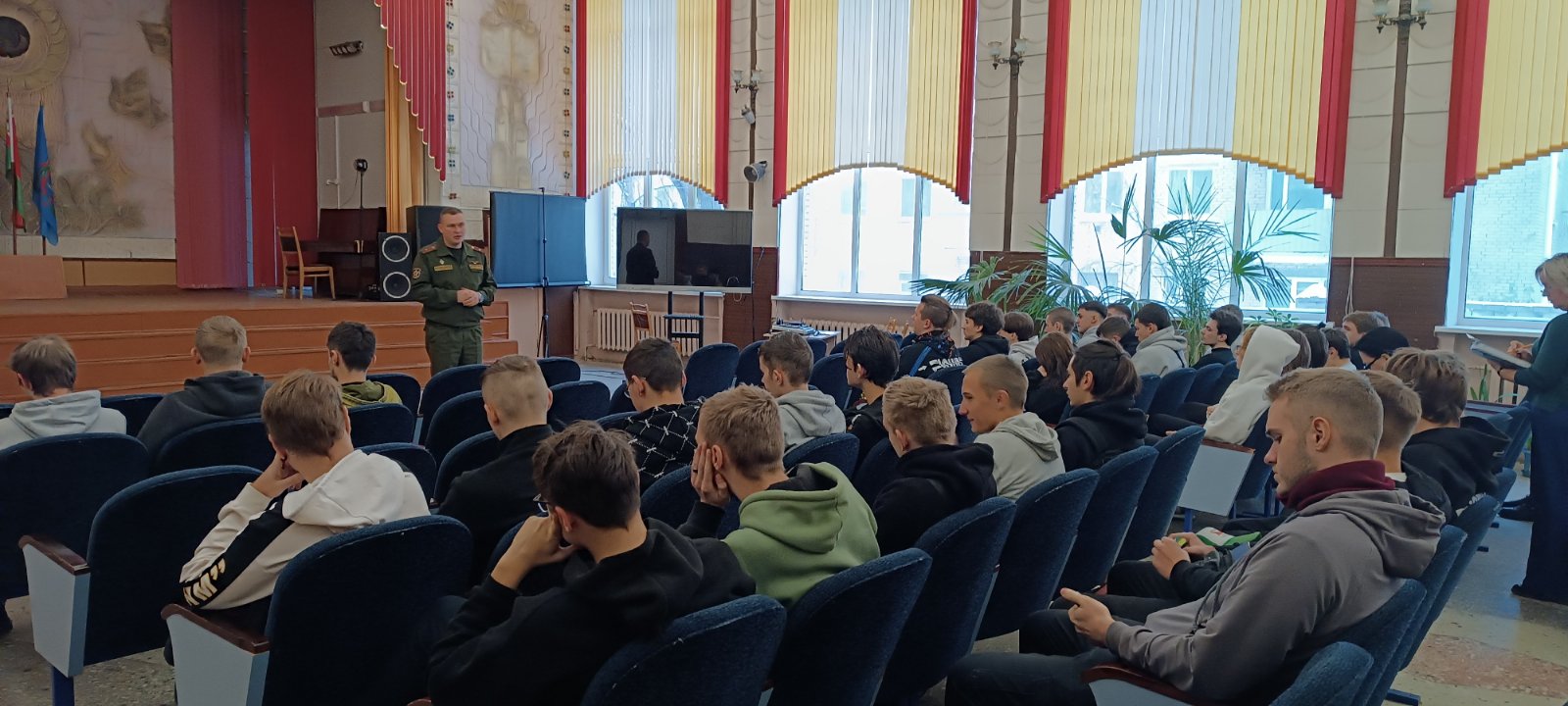 23 ноября 2023 году с учащимися колледжа (4-го курса, учебный корпус №1) при участии офицера Витебского областного военного комиссариата в рамках профессиональной ориентации проведен Урок мужества «Есть такая профессия — Родину защищать!».