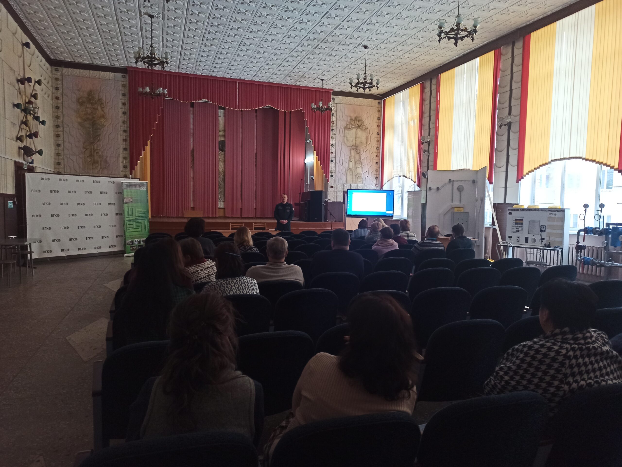 13.02.24 в ВГКЭ состоялось собрание трудового коллектива по теме: «О вопросах обеспечения безопасности», на котором выступал заместитель начальника городского отдела по чрезвычайным ситуациям Лавейкин С.В.