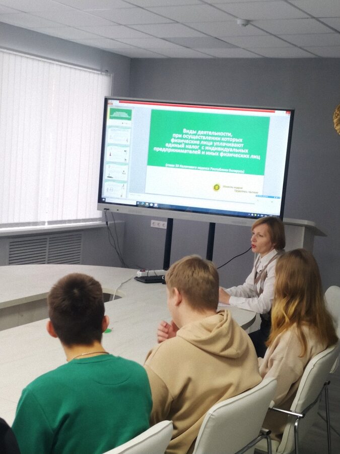 21 февраля 2024года в рамках проведения декады цикловой комиссии преподавателей экономический предметов состоялась встреча учащихся группы 9ЭК-43 с главным инспектором инспекции МНС по Первомайскому району г. Витебска Березняк А.В.