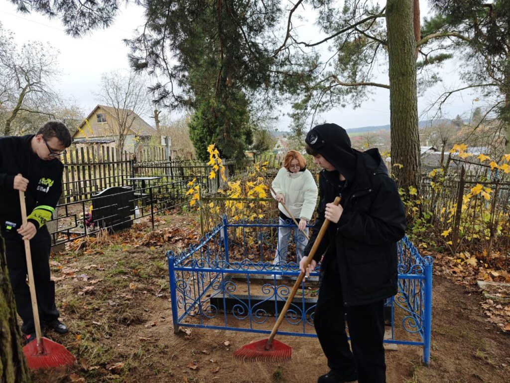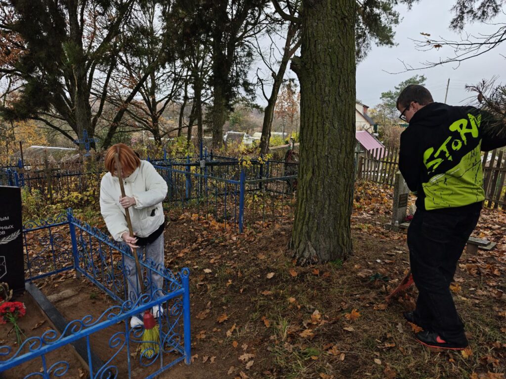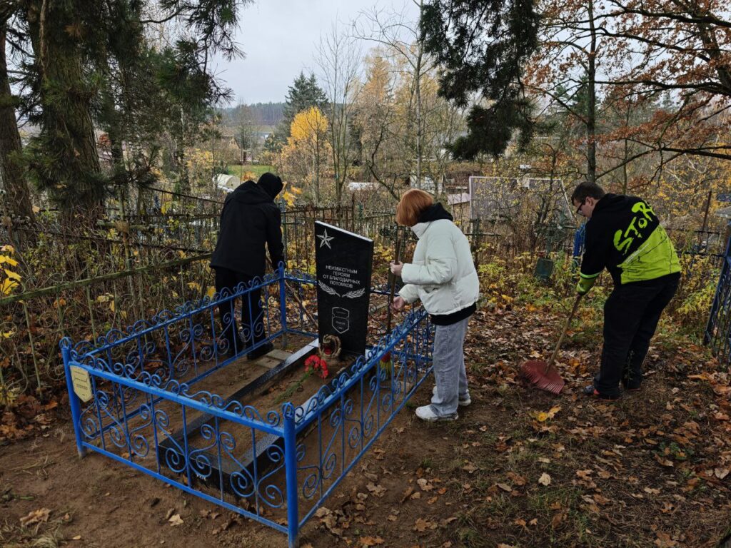 28.10.2025 волонтеры колледжа приняли участие в акции «ЗаДело» по благоустройству воинского захоронения — Могила неизвестного солдата на гражданском кладбище в СТ товариществе Лучеса-май