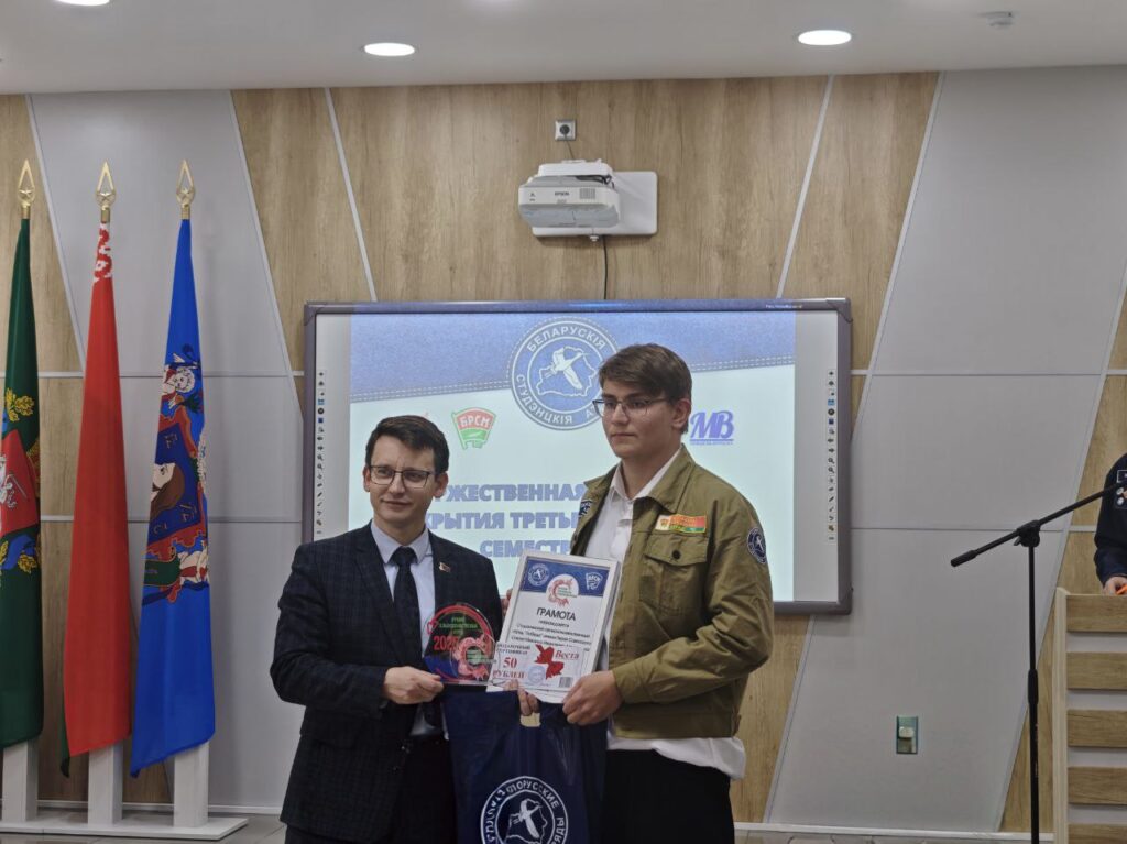 Штаб трудовых дел ПО ОО «БРСМ» УО «Витебский государственный колледж электротехники» получил благодарность за участие в городском конкурсе «Трудовой семестр» в номинации «Лучший штаб трудовых дел первичной организации ОО «БРСМ» среди учреждений среднего специального образования.