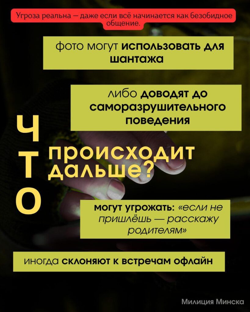 — рассказывайте детям об опасностях, которые находятся по другую сторону смартфона.