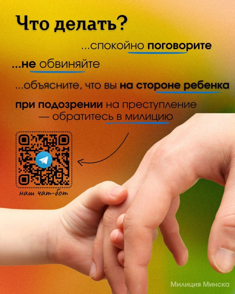 Напоминаем! Согласно законодательству Республики, Беларусь, лицам до 16 лет запрещено находиться на улице без сопровождения родителей, опекунов или совершеннолетних лиц, которых они уполномочили, в период с 23:00 до 6:00.